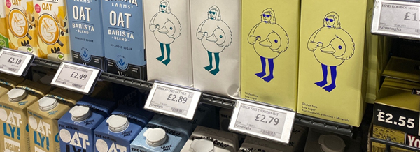 すべての商品を電子棚札に変えるのではなく、一部の売り場にだけ導入し、他は紙の棚札を使用する方法です。