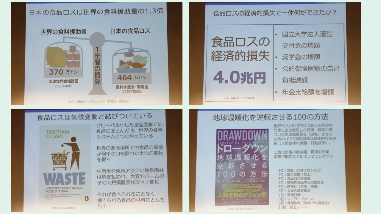 井出さんのお話を通じて、食品ロス削減は単なる“数字の問題”ではなく、“人々の暮らしを守るための行動”であることを改めて実感しました。